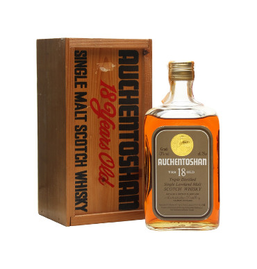 An old rectangular bottle of Auchentoshan 18 year old, bottled at 43% for the Italian market.