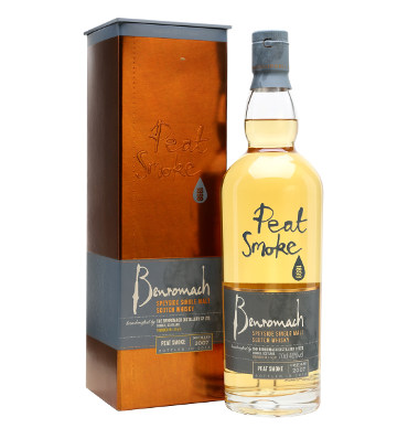 Benromach Peat Smoke distilled in 2007 is part of the small number of batches of peated whisky produced at the Speyside distillery. With a level of 62ppm, this is seriously smoky with notes of liquorice, orange (without water) or grapefruit (with water).
