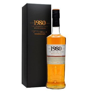 A very special Bowmore from a hogshead filled on August 9th 1980, the day that Queen Elizabeth II visited the distillery. Cask #5774 was acquired by Jim Howat, then Chairman of Morrison Bowmore and was left in his will to the JTH Charitable Trust he created with his wife Christine. Designed and bottled in 2011 by Morrison Bowmore as a special limited edition for the charitable trust yielding 156 bottles at a natural strength of 46.7%.