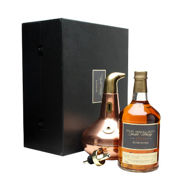An official release of single cask Bowmore, distilled in August 1980 and bottled in July 2004 at cask strength. What's more, it comes with a rather nifty replica copper still decanter, embossed with a name plate featuring the bottle number.