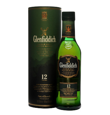 A half bottle of Glenfiddich's flagship 12 year old whisky - as of 2011 the largest selling single malt whisky in the world.