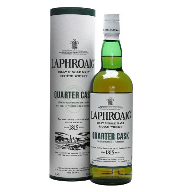 A vibrant young Laphroaig whose maturation has been speeded up by ageing in quarter casks. This shows soft sweetness and a velvety feel when first tasted, then the intense peatiness so unique to Laphroaig comes bursting through. A terrific whisky and great value.